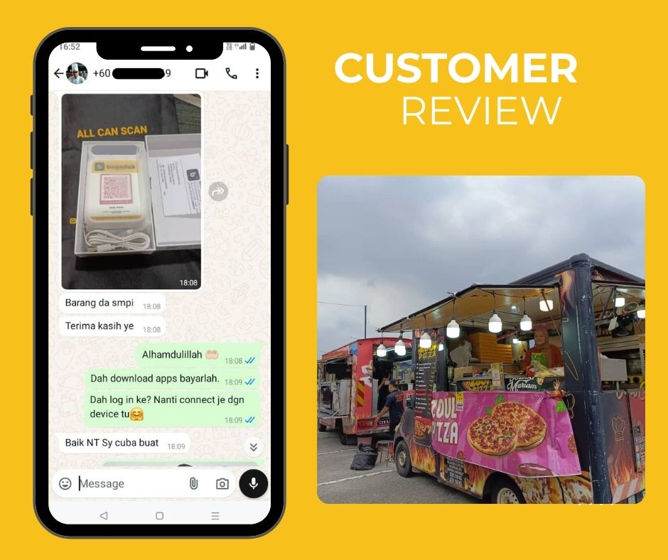 Anda boleh mendapatkan mesin SMART QR PRO dengan menghantar maklumat pendaftaran seperti IC, nombor akaun bank, gambar tempat berniaga, dan SSM (jika ada) melalui WhatsApp. Setelah itu, kami akan proses dan hantar mesin kepada anda.